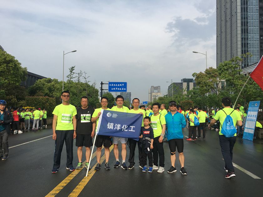 本次比赛以“健康、慈爱、环保”为主题,共设置半程马拉松、短程马拉松(11.7公里)、迷你马拉松(3.7公里)三个项目。代表公司参赛的7名队员中,2人参加半程马拉松,1人参加短程马拉松,4人参加迷你马拉松。此次系公司“悦跑团”第二次参加九龙湖(宁波)国际半程马拉松赛,虽然已有充足参赛经验,但队员们仍对自己严格要求,赛前通过多种途径积极锻炼,磨练体力和意志,如氯厂张依群、王伟民坚持每天长跑10公里,生产部胡贵勇坚持每天骑行一小时往返公司,新材料部傅飞涛多次参加足球、羽毛球、登山等协会活动。一份努力,一分收获。在参赛过程中,凭借之前的锻炼成果和众人之间的相互鼓励,所有队员均顺利完成了比赛。