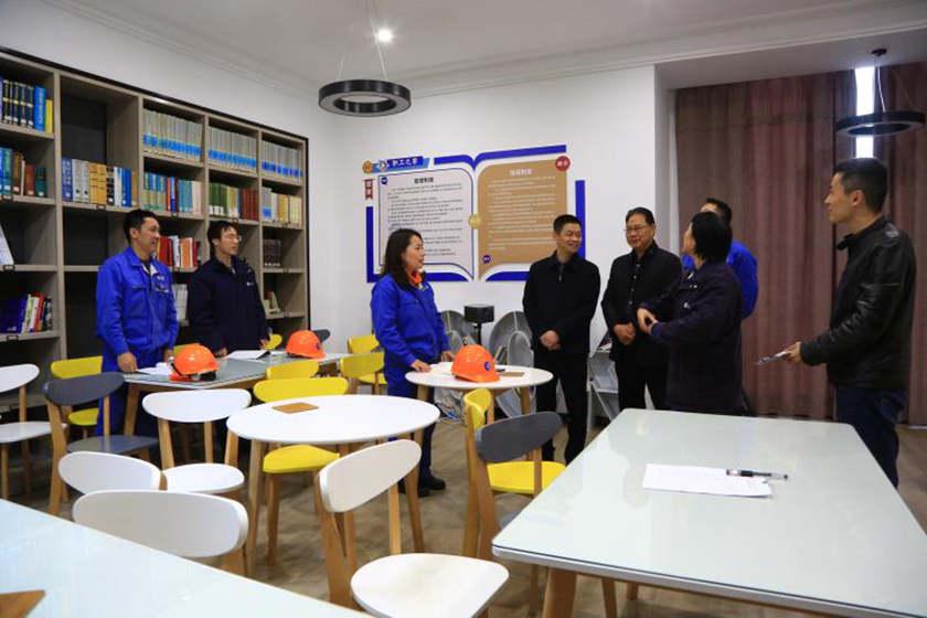 朱学峰一行首先来到公司职工之家、科技阅览室、卢学锋大师工作室等职工活动场所,详细询问了各个活动场所的活动内容、使用频率及活动规模。公司总经理周强、工会主席邬优红在现场向朱书记汇报了近年来公司工会在和谐企业建设、产业工人队伍改革、工资集体协商精细化示范点创建等方面的工作。