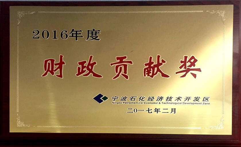 动态速递 公司荣获宁波石化区2016年度“财政贡献奖”