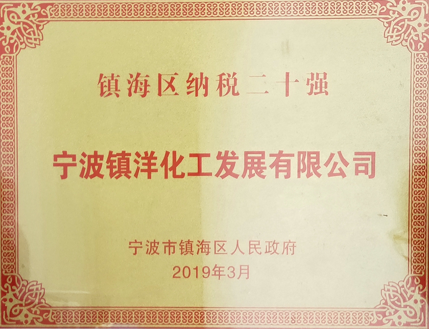 近日,公司荣获宁波石化区经济技术开发区2018年度实力骨干二十强企业称号,这是对所有镇洋人在过去一年里鼓足干劲、辛勤付出的充分肯定。