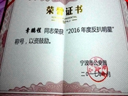 公司发展部章鹏程荣获宁波市“2016年度反扒明星”称号