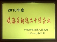 2月21日下午,在新一年镇海区经济工作会议上,公司荣登镇海区2016年度纳税二十强企业。