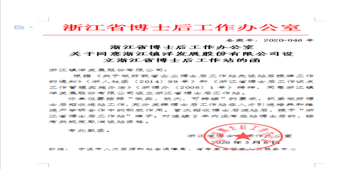 近日,公司获得浙江省博士后工作办公室批准,成功设立博士后工作站。