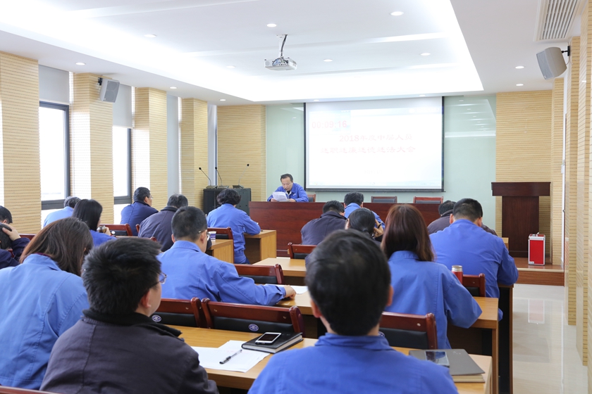 1月18日,公司举行2018年度中层人员述职述廉述德述法大会,16名部门中层人员作自述报告。公司中层以上人员,各部门、工会、党员、团员代表参加会议。