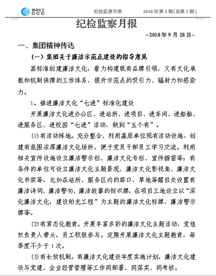 今年8月以来,为进一步深化公司纪委监督责任,做深做细做实监督执纪问责工作,公司建立纪检监察月报工作机制,并于8月下旬印发第一期纪检监察月报。
